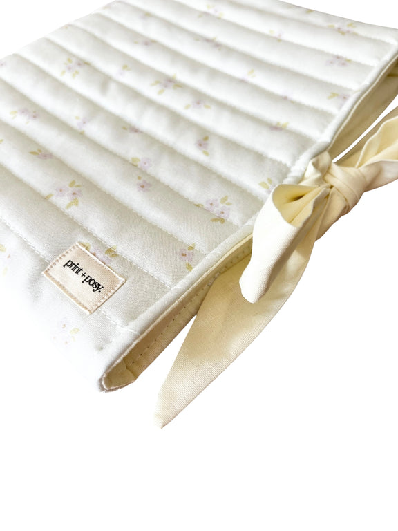 The Little Lilac quilted Book Sleeve is the sweetest and most practical home for your books. Designed to protect your books when you're on the go, and it also work perfectly for journals, planners or electronic devices. The bow tie detailing ensures your books stay safe and secure in your bag when you're out and about.